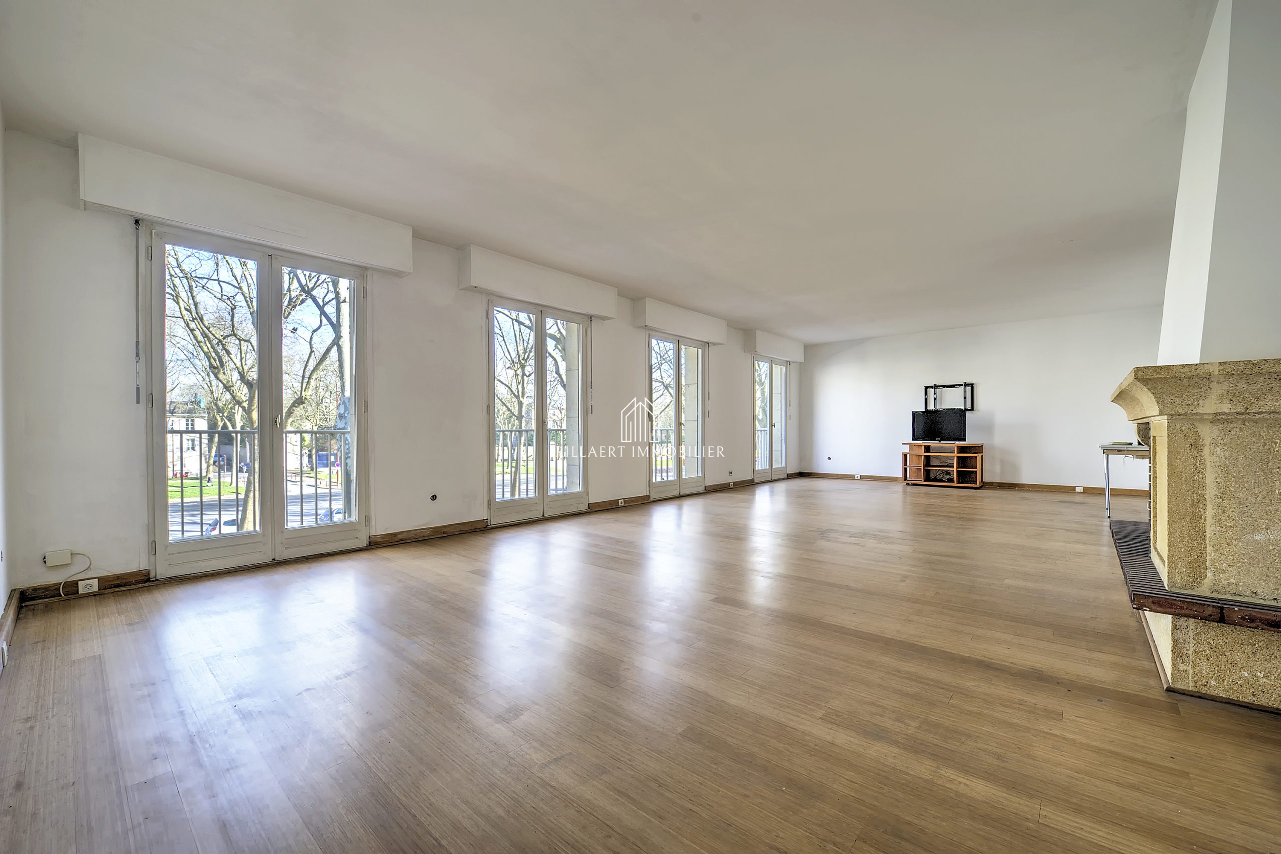 Cet appartement familial de 149,57 m² se compose d’une belle entrée de 9 m² desservant une cuisine de 10 m² d’un côté, et une vaste pièce de vie de 52 m² cheminée en parfait état de marche de l’autre. Cette pièce principale est très lumineuse avec 4 portes-fenêtres en double vitrage dont 3 d’entre-elles donnent accès à un balcon filant de 6 m².
