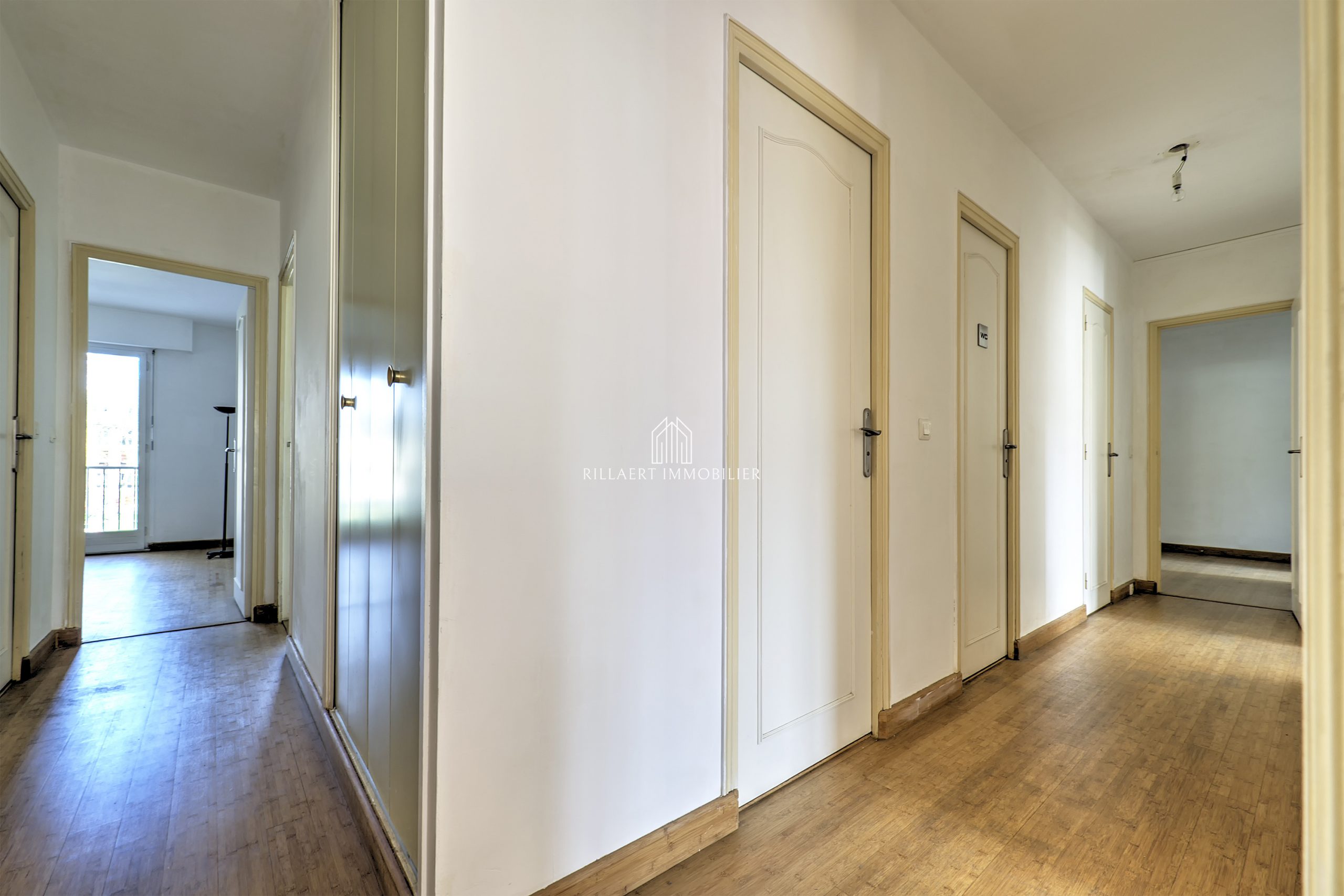 Cet appartement familial de 149,57 m² se compose d’une belle entrée de 9 m² desservant une cuisine de 10 m² d’un côté, et une vaste pièce de vie de 52 m² cheminée en parfait état de marche de l’autre. Cette pièce principale est très lumineuse avec 4 portes-fenêtres en double vitrage dont 3 d’entre-elles donnent accès à un balcon filant de 6 m².