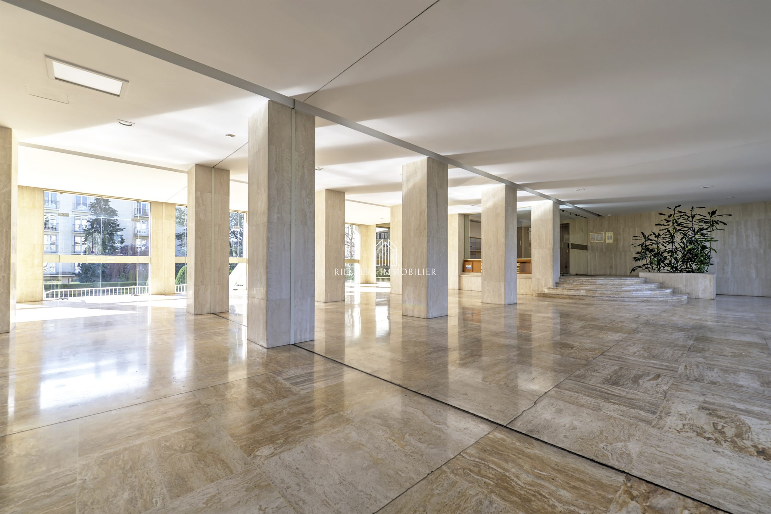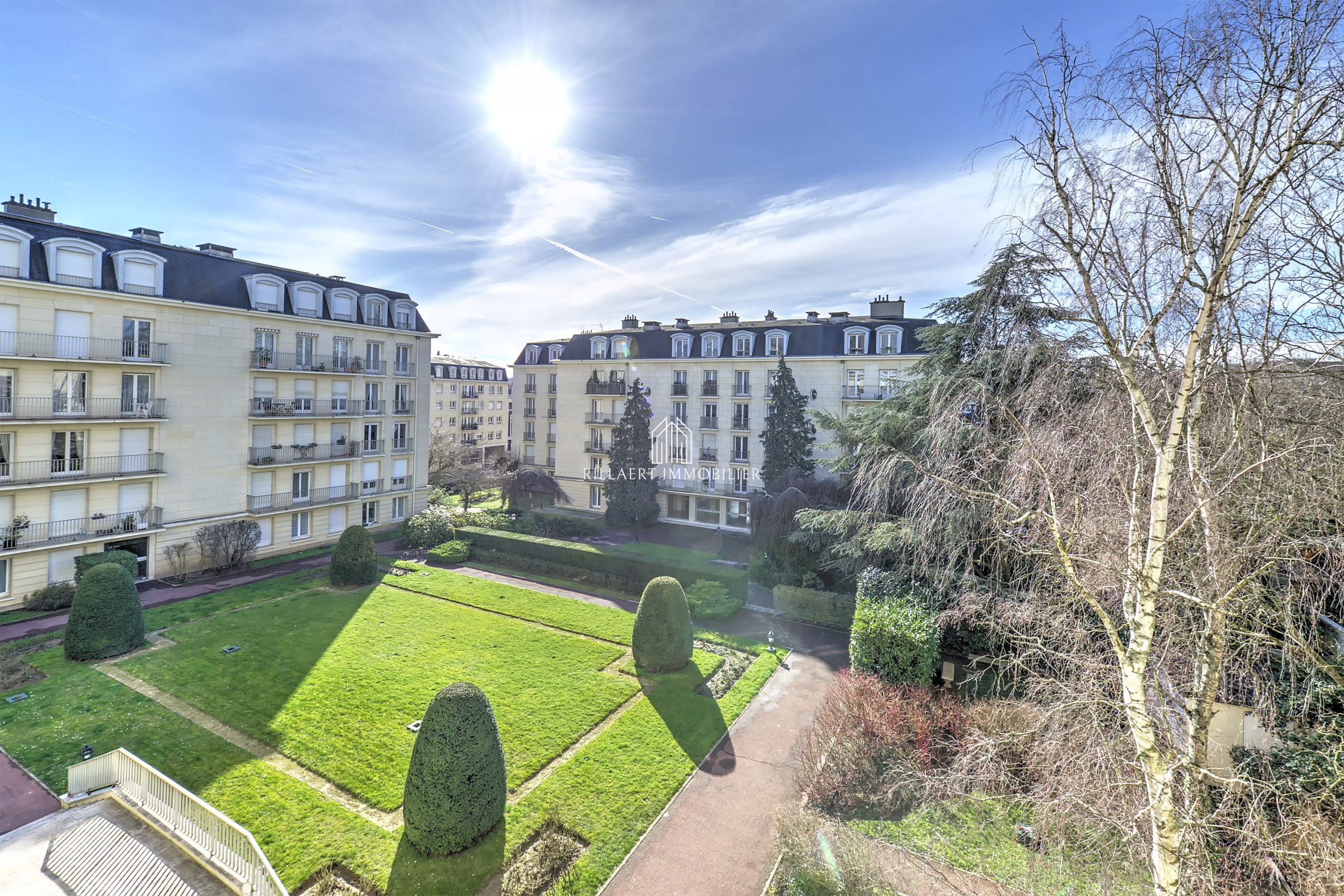 Situé au 2e étage avec ascenseur et gardien, l’appartement est traversant avec pour exposition Nord/Sud et une vue dégagée d’une part sur l’Avenue de Paris et d’autre part sur les jardins de la résidence.